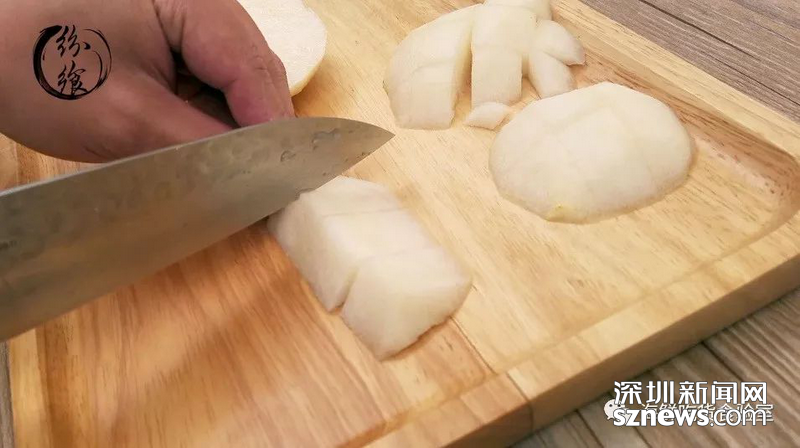 泡發(fā)好的燕窩一份、雪梨一個、冰糖和枸杞若干。