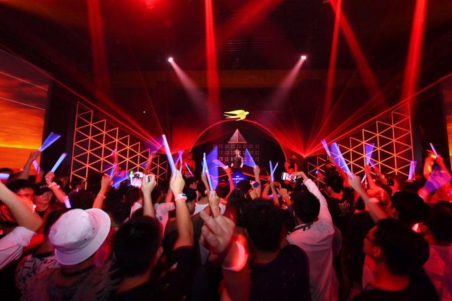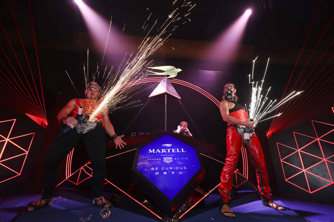 身處黑暗的嘉賓們被突如其來的激光音浪挑起了體內(nèi)的好奇因子。隨著馬爹利名士派對(duì)列車的橫空出世,一切派對(duì)規(guī)則和框架都被打破。明暗、動(dòng)靜的瞬間變換讓嘉賓們的感官受到了巨大沖擊,源源不斷的派對(duì)好奇心釋放出無邊想象力,所有人對(duì)派對(duì)的認(rèn)識(shí)被刷新。在干邑香氣與變幻燈光中,嘉賓們或在深邃神秘的“海底世界”與美人魚共舞,或在“冰山世界”的清冷氣息中回歸純凈淡然,或在“火山世界”盡情釋放派對(duì)火熱能量,或在“未來世界”中來一次想象之旅。帶有金燕標(biāo)識(shí)的專屬手環(huán)也隨著周身環(huán)境不斷變換色彩,讓嘉賓們身體力行地探索馬爹利名士所締造出的奇妙世界。