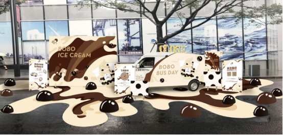 本次喜茶“波波冰淇淋巴士”全面升級,延續(xù)了時尚的波點元素,融入冰淇淋流質爽滑的視覺形象,讓整個快閃店在炎熱的夏天也透著一絲絲涼意?,F場還增加了波波冰淇淋背景墻與地貼,烘托了夏天的歡樂氛圍,為消費者打造更有趣味性的互動環(huán)境。