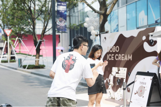 活動當天,只要身穿波點元素衣服,就可在波波巴士站領取一杯喜茶派送的新鮮現做的“波波冰淇淋”?;油娣ㄒ哺迂S富,除了現場設置了很多互動拍照的小道具和背景之外,還新添加了抽獎、飛鏢游戲環(huán)節(jié),并為消費者準備了多樣波波冰淇淋周邊,如喜茶定制波波手機殼、波波冰淇淋扇子、波波冰淇淋貼紙等等。