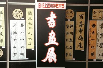 學校是教育人、培養(yǎng)人的主陣地,而深化教育改革,打造藝術特色,不僅僅是幾個教室、一個操場的概念,也絕非是一堂課、一次活動。走進上屋小學,記者發(fā)現(xiàn),學校良好的藝術文化環(huán)境無時無刻不在發(fā)揮著育人作用。從名家名畫進教室、班級美術活動展區(qū)等班級藝術文化環(huán)境營造到墻畫、板報甚至是校園綠化等校園外部環(huán)境建設,學校的每一處角落都散發(fā)著濃郁的藝術氣息。同時,每個樓層將學生的書法、繪畫等藝術成果進行展示,讓學生從中體會到成就感、享受到審美的愉悅。孩子們在學校濃厚的藝術教育氛圍中,盡展才華、盡情發(fā)揮,放飛自己的夢想。