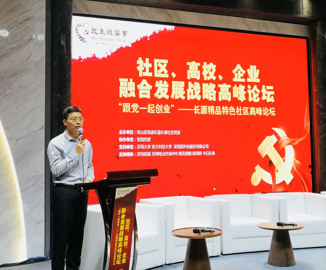 深圳新聞網(wǎng)訊10月30日,社區(qū)、高校、企業(yè)融合發(fā)展戰(zhàn)略高峰論壇在深圳市南山區(qū)智園 B1棟黨群服務(wù)中心大樓舉行,論壇由南山區(qū)桃源街道長(zhǎng)源社區(qū)黨委主辦。本次論壇以“社區(qū)、高校、企業(yè)融合發(fā)展戰(zhàn)略”為主題,匯聚了來自社區(qū)、高校、企業(yè)的相關(guān)知名人士,共同探討融合發(fā)展策略,打造長(zhǎng)源精品特色社區(qū)。桃源街道黨工委書記黃健,知名社會(huì)學(xué)家、深圳大學(xué)教授易松國(guó),深信服科技股份有限公司黨委書記林彥,南方科技大學(xué)致誠(chéng)書院副院長(zhǎng)藍(lán)海等出席了論壇。