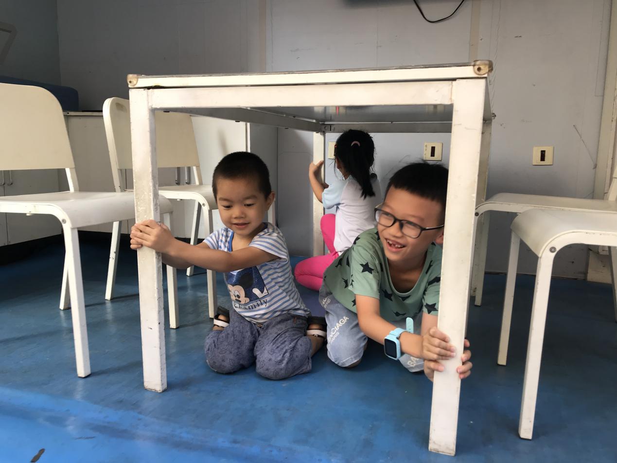兒童平安訓(xùn)練營活動共有5個版塊,分別是動感地帶、火眼金睛、鐵壁鋼手、浮力盔甲、應(yīng)急包。動感地帶活動版塊的主體是地震體驗平臺,通過安全教育車的地震體驗功能,社區(qū)居民成功學(xué)會地震躲避知識要點:規(guī)避易倒塌、易破碎、已墜落三類物品;桌下/床下躲避跪、躲、抓三大要點。浮力盔甲是當(dāng)身邊發(fā)生溺水或者存在溺水隱患時,可以利用身邊常用的物品比如礦泉水瓶和衣服制作緊急救生衣。鐵壁鋼手是災(zāi)害發(fā)生、救援難以及時到達情況下,利用身邊的物品,對手臂骨折者進行簡易包扎。火眼金睛是在許多大地震、火災(zāi)和意外傷害中,教會學(xué)生認識一些室內(nèi)、室外的常見安全隱患。