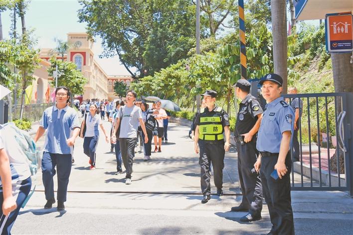 據(jù)悉,今年南山區(qū)共有5個考點,167個考場,4640名考生參加考試。高考期間,南山警方在分局指揮中心設立總指揮部,在南頭中學、深大附中、第二高級中學、華僑城中學、育才中學等5個高考考點設現(xiàn)場指揮部,全面統(tǒng)籌各項高考安保工作。同時,聯(lián)合學校、交警、消防等部門,加強對考點及周邊重點單位、公園、商圈的檢查巡邏力度,積極排查各類安全隱患,確保轄區(qū)考點平安有序,保障考生順利參考。在加大治安巡防、安全檢查、交通疏導力度的同時,南山警方同步做好服務工作。高考期間,南山警方為高考考生搭建安全便捷的綠色通道。6月7日,南山警方先后為2名“三考”考生辦理臨時身份證,從受理、制證到發(fā)證,20分鐘內迅速完成,確保考生能安心赴考。
