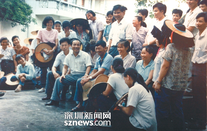 上個世紀八十年代,南嶺村老書記張偉基(中)與黨員群眾在談心