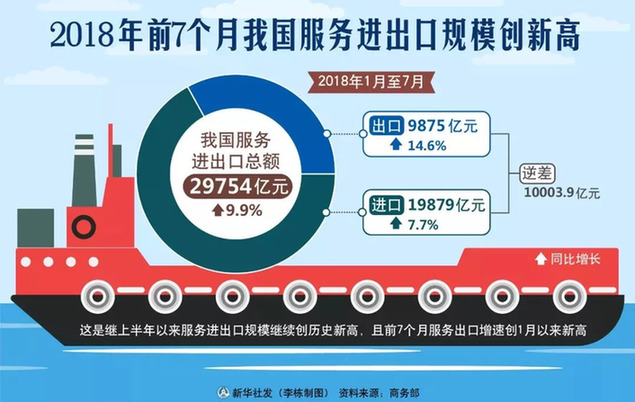 ① 商務(wù)部發(fā)布數(shù)據(jù)顯示,前7個月我國服務(wù)進(jìn)出口規(guī)模創(chuàng)新高。