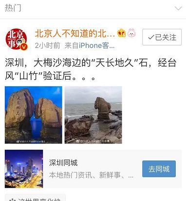 管理處工作人員說,這次臺風(fēng)“山竹”確實(shí)重創(chuàng)大梅沙,“天長地久”石也受到了一定程度的損害,跟網(wǎng)傳的圖片相似,左邊的一塊石頭,已經(jīng)被吹倒了。