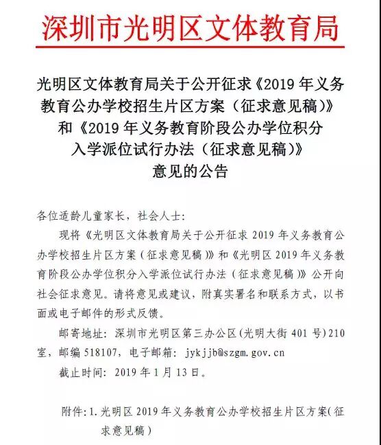 原標(biāo)題:深圳市光明區(qū)的家長,2019年公辦小學(xué)、初中招生片區(qū)和學(xué)位積分方案你怎么看?