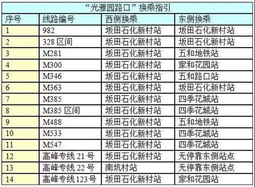 二、光雅園路口:982、328區(qū)間、M281、M300、M346、M363、M385、M385區(qū)間、M488、M533、M547、高峰專線21號(hào)、高峰專線22號(hào)、高峰專線123號(hào)等14條線路取消??抗庋艌@路口站,西側(cè)乘客可到坂田石化新村站、南坑村站換乘出行,東側(cè)乘客可到四季花城站、五和地鐵站、五和路口站換乘出行。