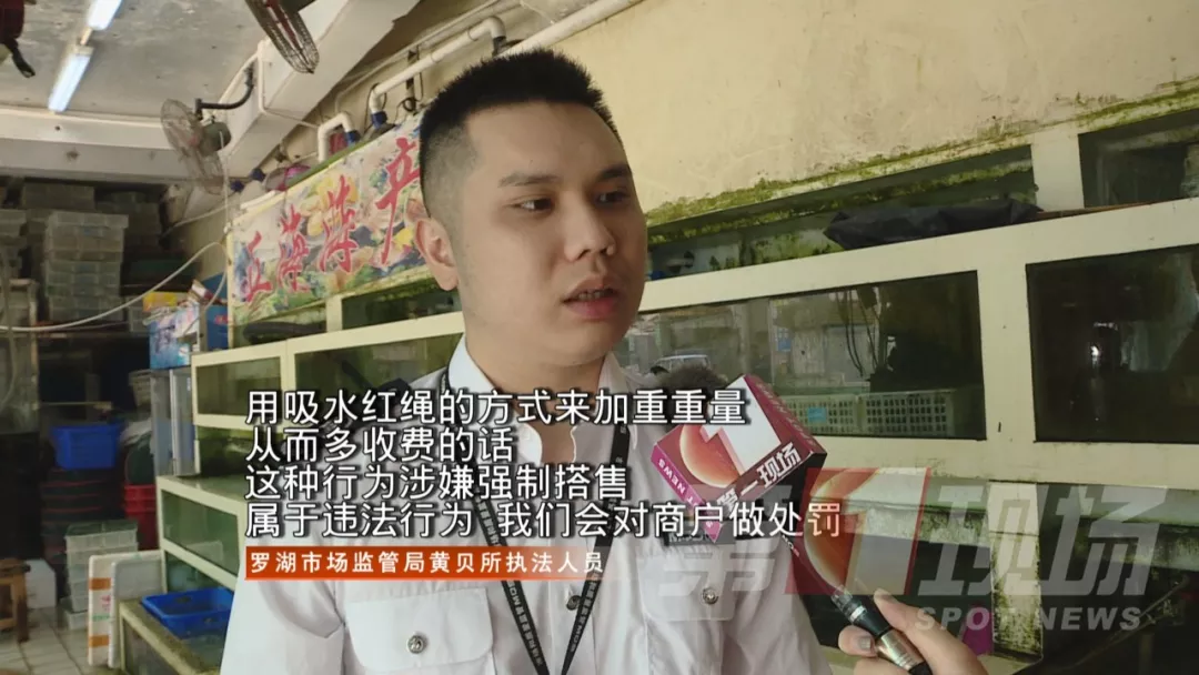 羅芳水產(chǎn)批發(fā)市場商家承認,的確有一些進貨商為了盈利,會要求他們幫忙把紅繩綁上去,或者自己將紅繩加上去的情況,那這一行為是否合規(guī)?記者聯(lián)系了轄區(qū)市場監(jiān)督管理局的執(zhí)法人員到現(xiàn)場。
