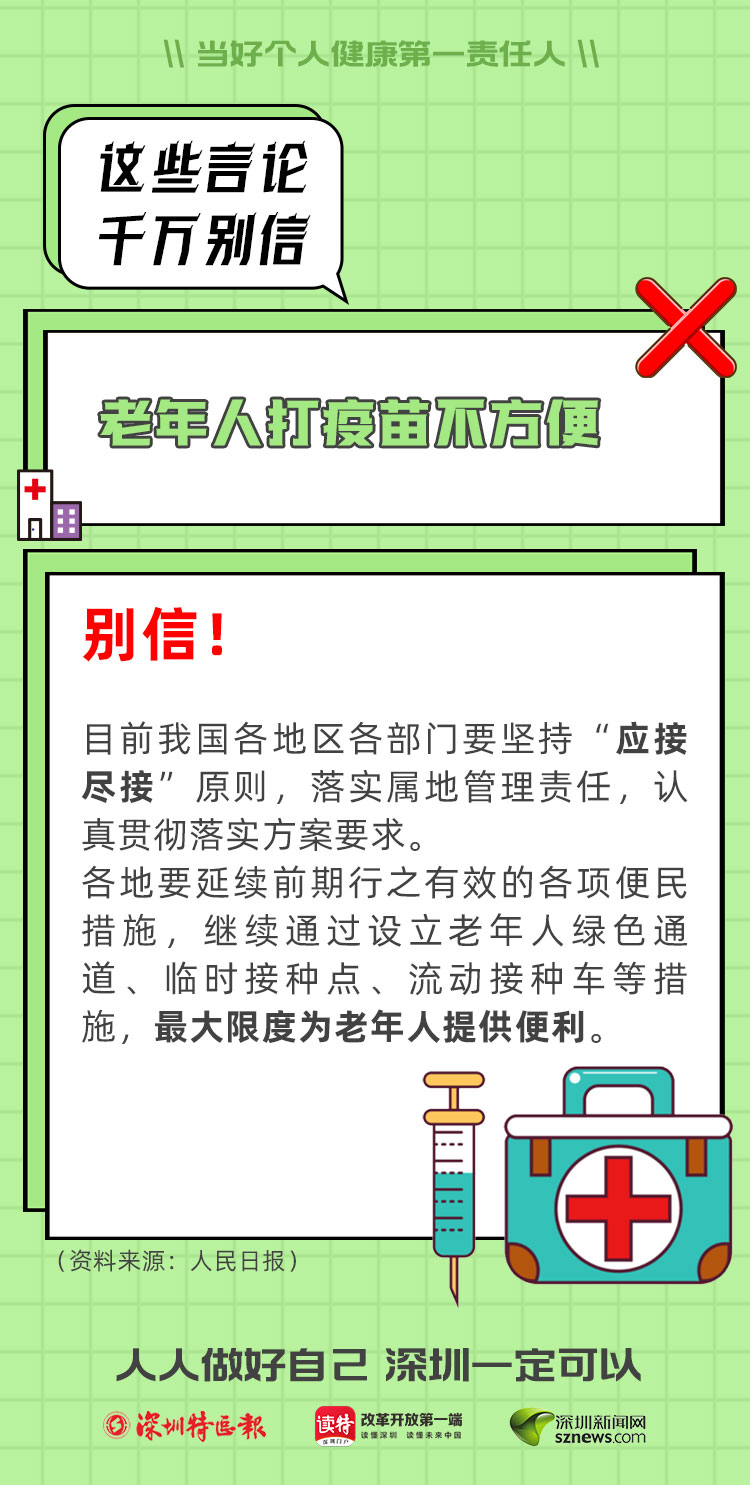 當(dāng)然,還有很多老人認(rèn)為自己身體虛弱,猶豫該不該打疫苗。其實(shí),這事兒要讓科學(xué)來決定。就近前往疫苗接種點(diǎn),醫(yī)生一定會(huì)本著負(fù)責(zé)態(tài)度,考察您的身體狀況,給您是否接種疫苗提供最靠譜的參考意見。事實(shí)上,這幾年,海量的接種數(shù)據(jù)也表明,接種疫苗不良反應(yīng)率極低,而且大多表現(xiàn)輕微。相信科學(xué),相信專家,準(zhǔn)沒錯(cuò)。