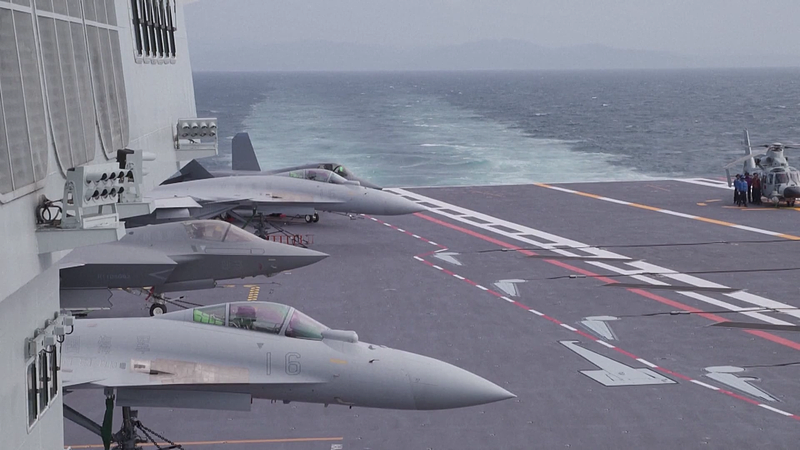 ▲日前,海軍福建艦航母編隊(duì)組織海上多科目訓(xùn)練。這是福建艦入列后首次海上實(shí)兵訓(xùn)練。(視頻截圖)圖源:CFP