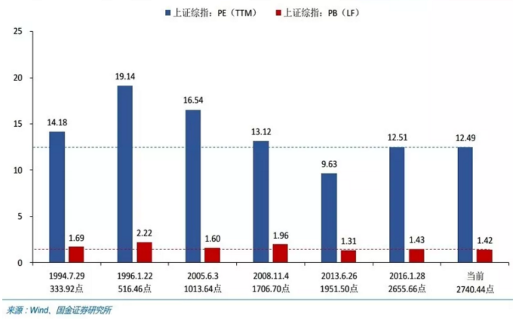 估值處于歷史第二底部:除上證A股外,其他板塊估值全面低于2014年低點(diǎn),深證A股和中小板幾乎與2012年12月份的低點(diǎn)持平。對(duì)比上證綜指歷次歷史大底的市盈率和市凈率來看,當(dāng)前估值僅略高于2013年1951點(diǎn)的時(shí)候,在7次歷史大底中位列倒數(shù)第二。