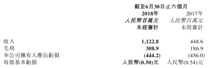 而伴隨這些動(dòng)作之余,該公司2018年中期的業(yè)績也進(jìn)步好轉(zhuǎn)。期內(nèi),該收入同比增長150.3%至11.23億元人民幣(單位下同);毛利同比增長65.3%至3.09億元;股東應(yīng)占虧損同比收窄2.6%至4.44億元。