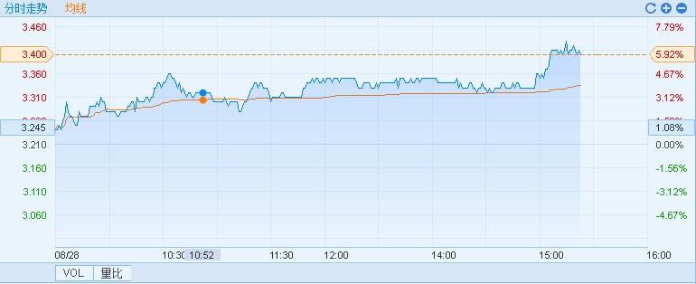 中國(guó)鋁業(yè)(02600)設(shè)定部分產(chǎn)品最低限價(jià),受此影響,股價(jià)上揚(yáng),截至15時(shí)20分,漲6.23%,報(bào)價(jià)3.40港元,成交額1.45億。