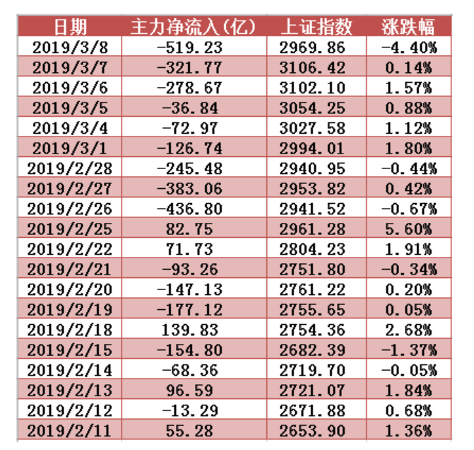 近20個交易日資金凈流入變動顯示資金集中流出幅度較大: