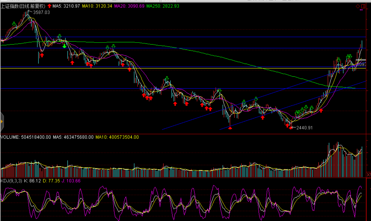 周一兩市股指高開低走,小幅收陰。上證綜指收盤跌0.05%報3244.81點,終結5連漲;深證成指跌0.61%;創(chuàng)業(yè)板指跌超2.12%;兩市成交合計10670億元,環(huán)比增加622億元。