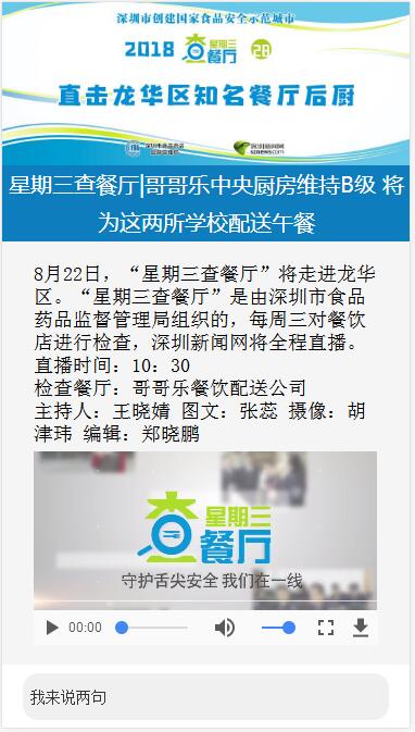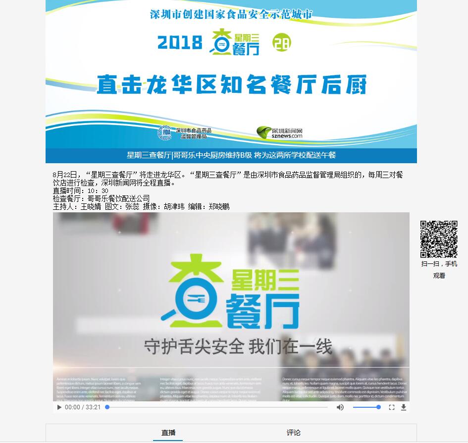 “星期三查餐廳”節(jié)目組采用深圳新聞網(wǎng)直播平臺,記者使用手機(jī)或攝像機(jī)進(jìn)行拍攝,照片、直播視頻、文本內(nèi)容等回傳后方編輯,編輯在直播平臺上進(jìn)行內(nèi)容整理,將執(zhí)法行動全程進(jìn)行視頻+圖文全程直播。網(wǎng)友無需下載任何客戶端,可通過Internet直接在PC、移動客戶端等設(shè)備上實(shí)時(shí)觀看執(zhí)法過程,并能在線對直播內(nèi)容進(jìn)行評論。