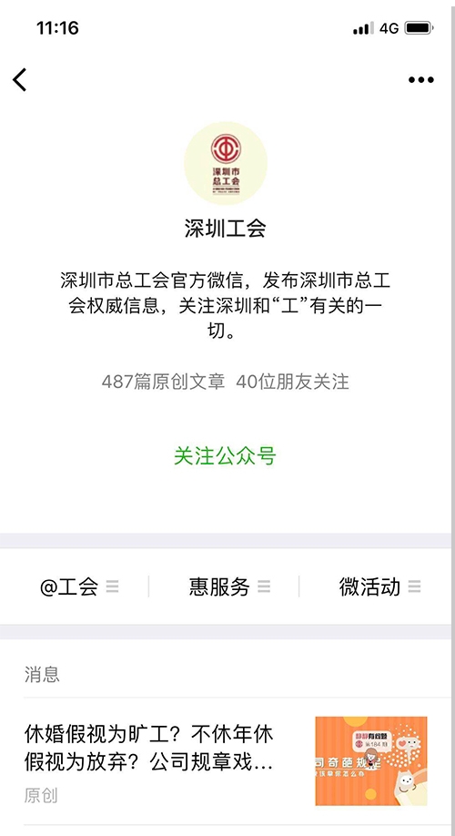 案例介紹:“深圳工會(huì)”是深圳市總工會(huì)官方自媒體,2015年上線,目前用戶數(shù)20萬。致力于打造集“工會(huì)發(fā)聲平臺(tái)”“工會(huì)工作者掌上寶典”“指尖上的職工之家”為一體的新媒體平臺(tái)。堅(jiān)持以職工為中心,體現(xiàn)工會(huì)特色,運(yùn)用“互聯(lián)網(wǎng)+工會(huì)”思維,遵循新媒體傳播規(guī)律,突出公益性、服務(wù)性,采取社會(huì)化運(yùn)營方式,整合資源,與知名媒體聯(lián)動(dòng),注重實(shí)用性和互動(dòng)性。適應(yīng)職工需求,開展豐富的線上線下活動(dòng),活動(dòng)參與人次達(dá)500萬。作為深圳工會(huì)新媒體的龍頭,積極提供業(yè)務(wù)指導(dǎo)和技術(shù)支撐,形成覆蓋百萬職工的工會(huì)新媒體矩陣。