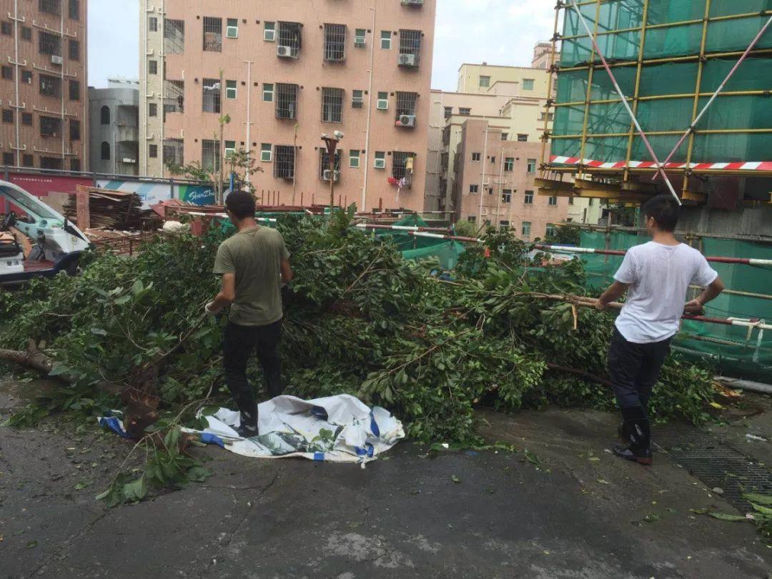 據(jù)統(tǒng)計,截至17日下午6時,福永街道共出動搶險人員770人,出動車輛45臺,清除路面障礙130余處,疏通道路邊溝橋涵70余處,修復(fù)交通設(shè)施45處,連夜貫通、清洗主干道路33條,扶正樹木283棵,清理枝葉約215.5噸、垃圾約198.5噸,修復(fù)垃圾桶630個、果皮箱330組,修復(fù)路燈15桿。