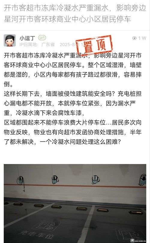 24. 帖文《開市客超市凍庫(kù)冷凝水嚴(yán)重漏水,影響旁邊星河開市客環(huán)球商業(yè)中心小區(qū)居民停車》