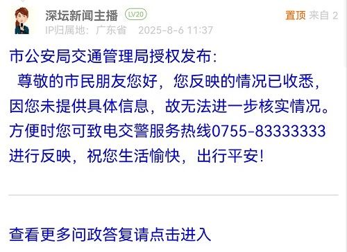 網(wǎng)友如有相關(guān)訴求、建言和意見的,可直接在深圳論壇“我說深圳事”欄目發(fā)帖進(jìn)行報(bào)料、投訴,或者通過官方報(bào)料QQ以及問政熱線等渠道反映訴求。