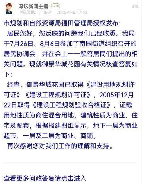 (一)關(guān)于“社區(qū)、街道辦很早就知道此消息,但業(yè)主和住戶一直被蒙在鼓里”:經(jīng)核實(shí),京基御景華城商業(yè)廣場(chǎng)原權(quán)利人深圳市京基房地產(chǎn)股份有限公司(下稱“京基公司”)于今年7月初將產(chǎn)權(quán)轉(zhuǎn)讓給深圳市龍勝電子市場(chǎng)有限公司(下稱“龍勝公司”),龍勝公司計(jì)劃將該商業(yè)廣場(chǎng)升級(jí)改造為二手手機(jī)市場(chǎng),并在相關(guān)視頻賬號(hào)上公開宣傳。相關(guān)經(jīng)營(yíng)主體出售物業(yè)產(chǎn)權(quán),在程序上無需街道社區(qū)審批同意或到街道社區(qū)備案,街道直至7月中旬才得知該商業(yè)廣場(chǎng)的產(chǎn)權(quán)轉(zhuǎn)讓事宜。