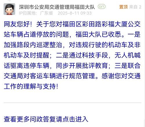 16. 帖文《投訴違停導(dǎo)致福田區(qū)彩田路北往南彩福大廈公交站公交無法??繂栴}》