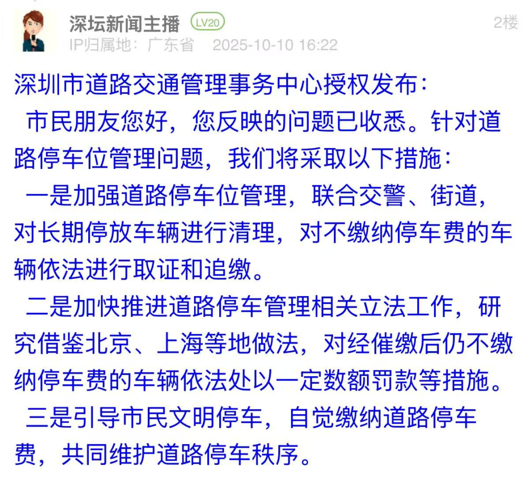 優(yōu)化建議:市民在帖文中反映,其此前的投訴件被標(biāo)記為“辦結(jié)”,但霸位車輛依舊未被移走,現(xiàn)場問題未解決,質(zhì)疑相關(guān)部門執(zhí)行力不足。對于市民的再次投訴,深圳市道路交通管理事務(wù)中心的回應(yīng)存在公式化、未切實回應(yīng)市民核心關(guān)切的問題,僅以“加強管理”“推進立法”“引導(dǎo)文明停車”等回復(fù),難以消除公眾對治理執(zhí)行力的疑慮。建議后續(xù)強化回應(yīng)針對性,具體問題具體答復(fù),如公開執(zhí)法流程、提供處置證據(jù)等,以務(wù)實態(tài)度回應(yīng)市民監(jiān)督,提升治理公信力。